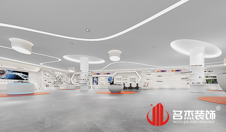 前臺(tái)區(qū)域當(dāng)中加入兩個(gè)大型的圓弧形的燈具造型,讓空間的設(shè)計(jì)感一下子就出來了,同時(shí)在加入logo色作為點(diǎn)綴色,讓空間中充滿活力。整體設(shè)計(jì)當(dāng)中也是在多處加入橙色活躍色來點(diǎn)綴,空間也變得更加有活力,再加上各個(gè)區(qū)域也有圓弧型元素和企業(yè)的銷售的產(chǎn)品形成相互呼應(yīng),能讓產(chǎn)品的要素更加深入人心。