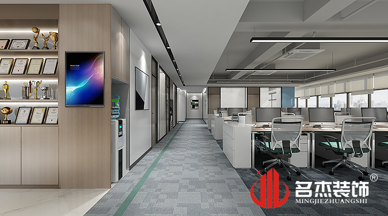 設計團隊根據(jù)行業(yè)特性和企業(yè)需求,將企業(yè)文化和品牌意識融入到整個裝修設計的環(huán)節(jié)當中。整體設計風格是現(xiàn)代簡約風格,利用簡約的時尚元素進行合理的搭配,讓空間中透露出一絲絲時尚且優(yōu)雅的氣息。同時傳統(tǒng)的黑白灰色調(diào)作為主色調(diào),在加入原木色調(diào)作為點綴色,也能很好的表達出綠色環(huán)保的設計要素。