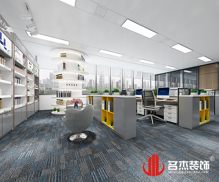 本辦公室裝修設(shè)計(jì)案例是美業(yè)類辦公企業(yè),是一家集化妝品研發(fā)和生產(chǎn)的科技型創(chuàng)新公司。設(shè)計(jì)團(tuán)隊(duì)以簡約時(shí)尚的風(fēng)格來作為整體的設(shè)計(jì)基調(diào),使用黃色跳色來作為整個(gè)空間的點(diǎn)綴色,讓空間的設(shè)計(jì)感一下子就出來了,也顯得空間更加有層次感。