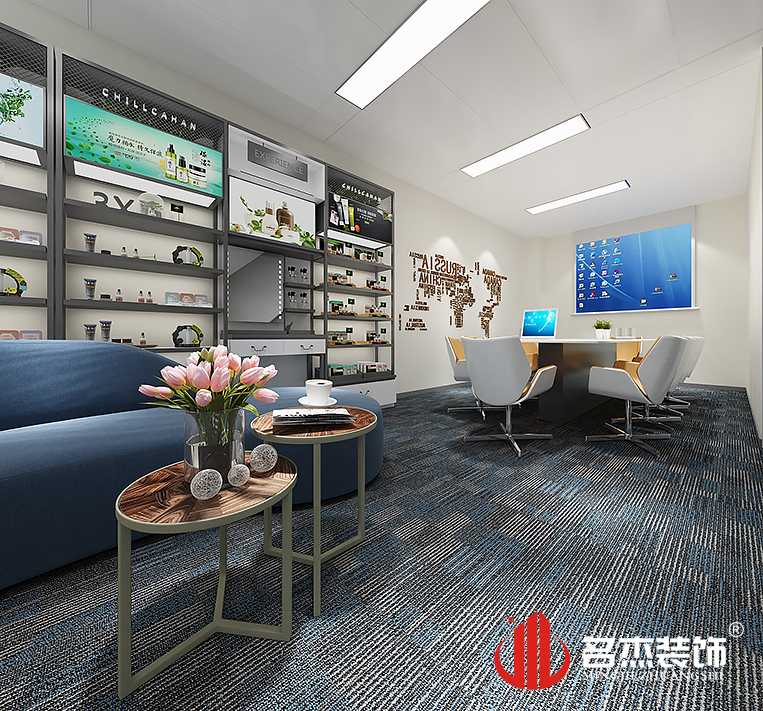 考慮到化妝品以女性為主,現(xiàn)代女性審美以小清新自然風(fēng)居多。整體以薄荷綠和原木色相互交替,視覺感清新優(yōu)雅,更能留住女性的心。辦公室區(qū)域裝修又較為不同,明顯分別出各個(gè)區(qū)域,員工的舒適就是工作動力業(yè)績上升的踏板。