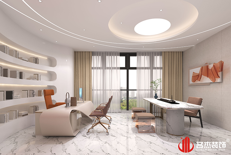在整體的辦公室裝修設(shè)計當(dāng)中,加入溫馨的色調(diào)作為主色調(diào),同時在選擇點綴色的時候,則使用對比度強烈但色彩柔和的顏色,突出空間的設(shè)計感的同時,還能為空間增加不同的層次感。大量柔和的燈光也是能夠襯托出整體輕奢的氛圍。
