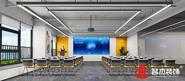整體的辦公裝修設計空間采用的是時尚簡約風格,大量的使用logo色讓空間不再單調(diào)的同時,還能增加整體空間的設計層次感。采用弧形玻璃隔斷為的就是增加設計的設計感,也讓空間綻放出不一樣的設計感。