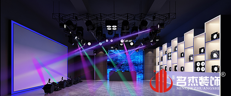 本設(shè)計案例中的企業(yè)是專舞臺燈光音響設(shè)備的,設(shè)計師通過對行業(yè)的了解,以及和企業(yè)詳細的溝通,了解到該企業(yè)的想法,設(shè)計出了能夠展示該企業(yè)品牌的設(shè)計費方案。使用黑白灰作為設(shè)計的主基調(diào),在其他地方也加入了點綴色來增加整體空間的設(shè)計感和時尚感。
