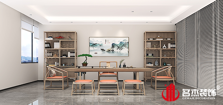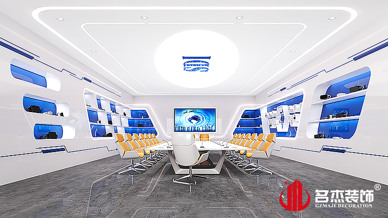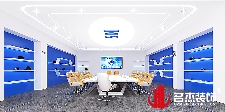 在前臺裝修設(shè)計方面,利用對稱的方式加上裝飾感強烈的球型燈具,來增強空間的設(shè)計感。開放式的展廳設(shè)計,加入一些有設(shè)計感的燈帶,更加能夠突出展廳的時尚科技感。而在茶室裝修設(shè)計方面,則是利用傳統(tǒng)的風(fēng)格來顯示企業(yè)穩(wěn)重的方面。