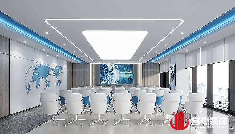 設(shè)計(jì)團(tuán)隊(duì)采用具有強(qiáng)烈科技感的配色,輔以不同造型的天花造型元素,營(yíng)造出科技感強(qiáng)烈的風(fēng)格,也回應(yīng)了寶詩(shī)龍對(duì)于未來(lái)辦公的憧憬。加上智能科技辦公家具和設(shè)備,讓空間的科技感更加突出,對(duì)于整體的辦公裝修設(shè)計(jì)空間效率提升有著很大的幫助。
