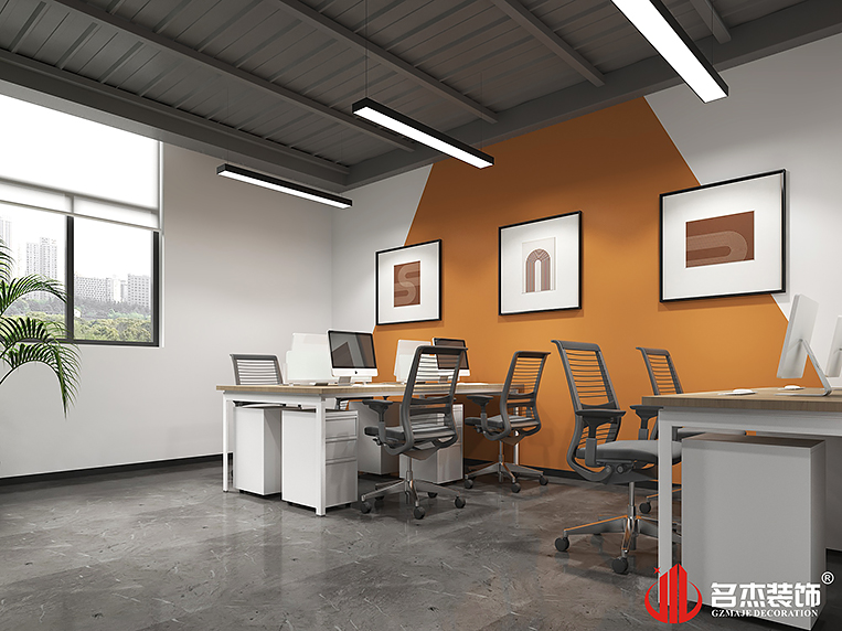 整體辦公室裝修設(shè)計風(fēng)格采用現(xiàn)代工業(yè)風(fēng)格,同時也在空間中加入logo色——橙色作為點綴色,讓空間也充滿活力,同時還能夠讓員工感受到活力滿滿的。不同的造型燈帶來的不同的感官享受,能夠讓空間變得更加有趣的同時,也是能夠讓空間變得更加有設(shè)計感。