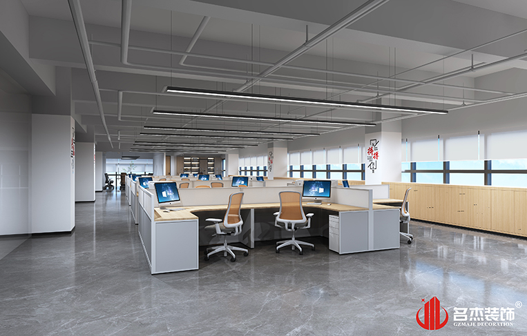 前臺區(qū)域使用弧形元素搭配藍色科技感的燈帶來打造專屬的科技感,這兩個元素搭配可以創(chuàng)造更多的可能性,再加上圓形吊頂,天花燈膜,可以讓辦公裝修設計空間的科技感更上一層樓。開放辦公區(qū)域則是選擇使用工業(yè)風來作為主打的風格,突出一個干練高效。而在經理室和總經理室采用的是簡約沉穩(wěn)的風格來打造,配合時尚的家具,搭配出不一樣的效果。
