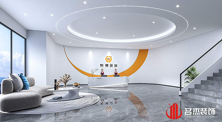 前廳區(qū)域采用企業(yè)的logo色系來作為點(diǎn)綴的色調(diào),加上一點(diǎn)弧形元素來作為空間的點(diǎn)睛設(shè)計(jì)手法,同時(shí)搭配圓形吊頂,讓整體空間變得更加有趣。其他辦公裝修設(shè)計(jì)空間區(qū)域采用的是時(shí)尚簡(jiǎn)約的風(fēng)格去搭建,讓簡(jiǎn)約的元素能夠進(jìn)入到每一個(gè)角落當(dāng)中,更好的展示企業(yè)的氛圍。