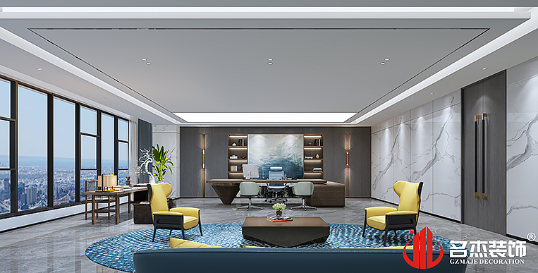 這次辦公裝修設(shè)計空間的層高是可以搭建兩層的,因此在前臺區(qū)域使用中空的設(shè)計手法,搭配時尚簡約的元素,讓前臺空間變得更加有氛圍感。整潔、簡約、大氣,都能夠在這個空間中很好的融合到一起。使用弧形前臺背景墻,寓意著魚如得水。而會議室中使用的是熱彎的霧化玻璃,能夠很好地保證隱私,同時也能夠在空閑的時候,讓整體空間看起來更加通透。