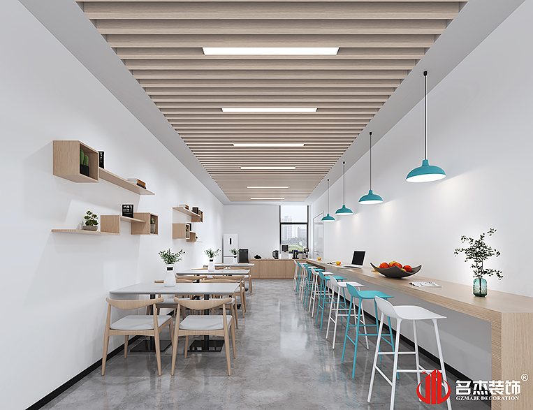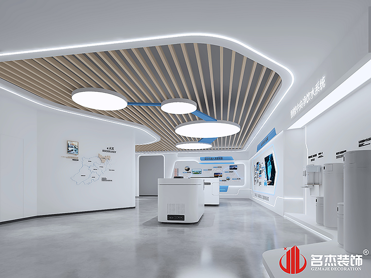 由于該行業(yè)是屬于高新科技行業(yè),設(shè)計團隊在整個辦公室裝修設(shè)計空間加入木色的吊頂,讓空間的格調(diào)不再屬于冷色調(diào),同時在部分區(qū)域加入科技的元素,響應(yīng)出該行業(yè)的科技屬性。在展廳區(qū)域則是特意使用上多邊形的木色吊頂,沿著動線來構(gòu)造,形成一種呼應(yīng)。