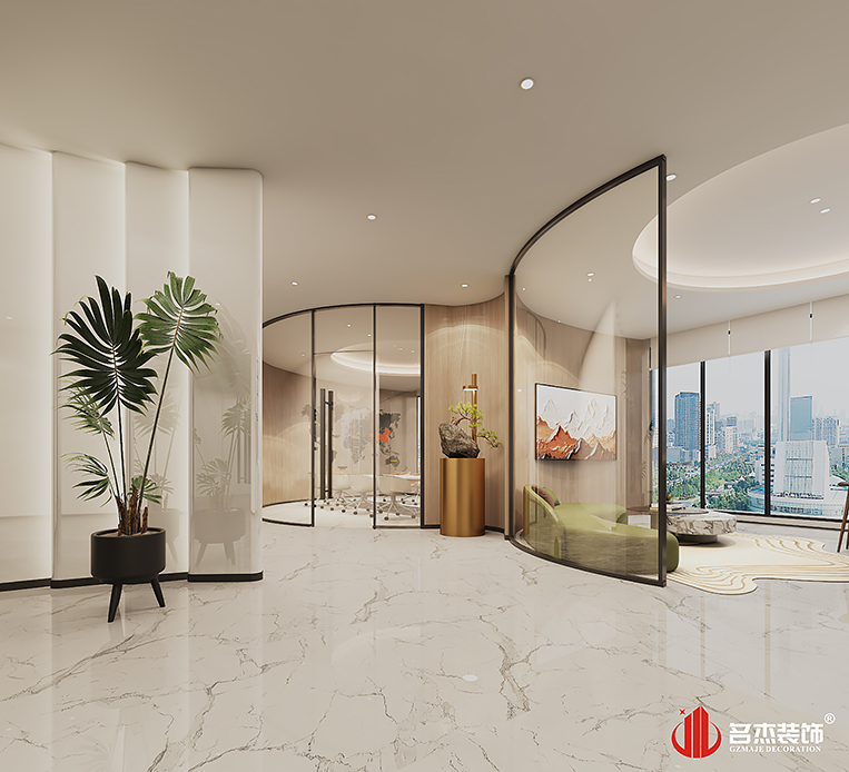 該企業(yè)是以技術(shù)服務(wù)、技術(shù)開(kāi)發(fā)、技術(shù)咨詢(xún)、技術(shù)交流、技術(shù)轉(zhuǎn)讓、技術(shù)推廣為主的科技型企業(yè),設(shè)計(jì)團(tuán)隊(duì)根據(jù)客戶(hù)的需求來(lái)進(jìn)行具體定制設(shè)計(jì),選取的風(fēng)格也不同往常的科技企業(yè),這次選擇偏向時(shí)尚簡(jiǎn)約的風(fēng)格來(lái)打造這個(gè)科技企業(yè)的辦公裝修設(shè)計(jì)空間。通過(guò)使用曲線來(lái)進(jìn)行空間動(dòng)線的布局,讓時(shí)尚簡(jiǎn)約的風(fēng)格有了不一樣的形態(tài)。