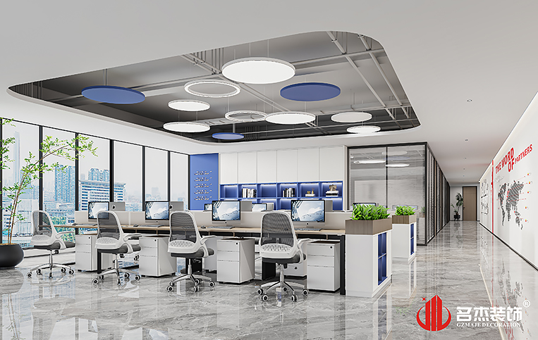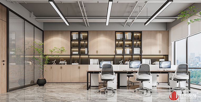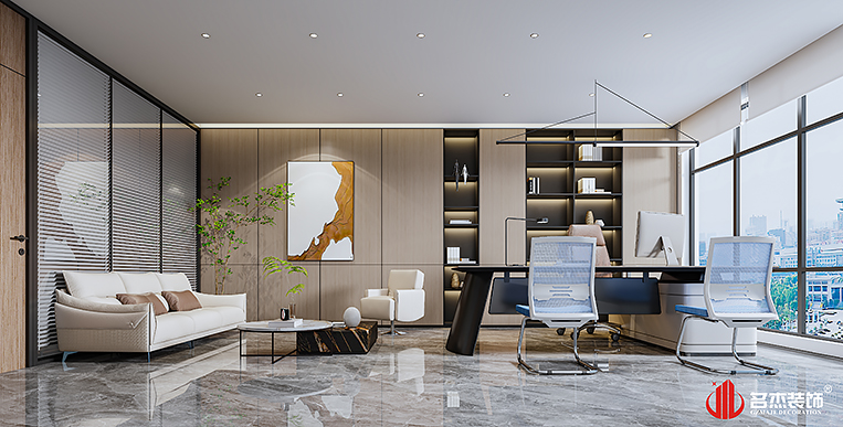 時尚簡約風格是市面上較為常用的一種風格,也會讓大部分辦公室裝修設計空間看起來千篇一律,因此設計團隊采用將該企業(yè)的VI色系加入到整體辦公裝修設計空間當中,突出企業(yè)的文化,同時還能夠?qū)⒋砜萍嫉乃{色融入到空間中,讓這個時尚簡約風格的空間有了不同于市面上的辦公室裝修設計空間。#廣州辦公室裝修設計公司#