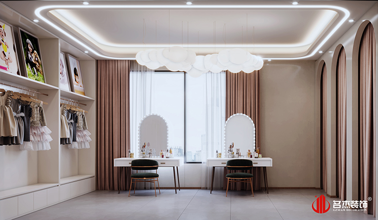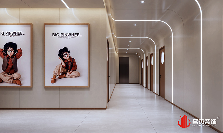 這次的案例是一家專職做兒童攝影,同時也是是中國華南地區(qū)最大的高端家庭影像品牌的兒童攝影品牌。設計團隊對這個充滿童趣的行業(yè),也是有著一定的了解,跟幼兒園的做法類似,同時也要考慮到行業(yè)追求時尚潮流,因此設計團隊定下了時尚潮流的風格,加入童趣的元素作為點綴,讓整個空間看起來更加有設計層次感的同時,還能夠滿足孩子們對于空間的需求。