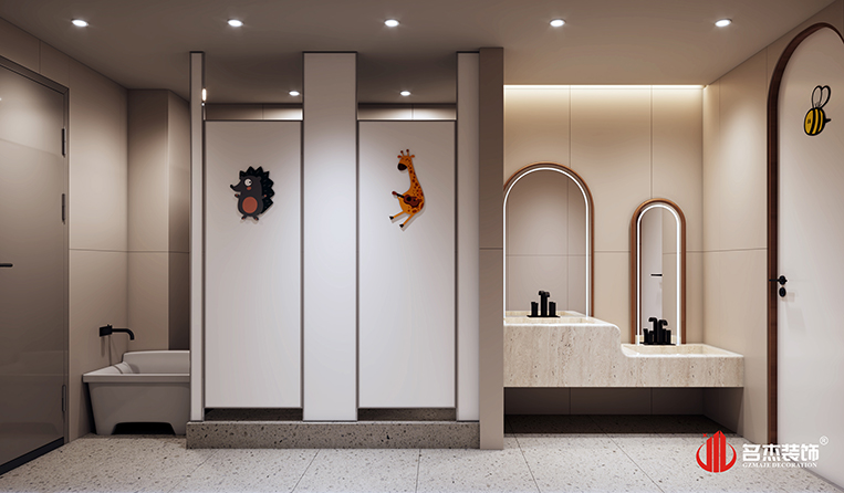 設計團隊在前臺區(qū)域使用比以往更多的圓弧形元素來作為辦公室裝修設計空間的主打設計要素,來避免孩子們碰傷的可能性,這樣的做法也是能夠讓空間的設計感更加強烈。家具的選擇上面也是選擇較為百搭的白色和原木色作為主要方向,呼應空間的同時,還能夠增加空間的設計層次感。而其他區(qū)域則是選擇較為常規(guī)的做法,通過對材質的選擇,打造出不同以往的設計風格。整體空間給人的感覺就是舒適,簡約而不簡單,同時也能夠符合兒童攝影的定位。