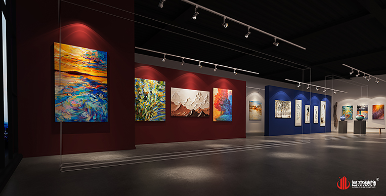 設(shè)計(jì)團(tuán)隊(duì)在前臺(tái)區(qū)域使用圓形吊頂,輔以具有線條美的燈具,配合中式傳統(tǒng)的配色來(lái)打造這個(gè)前臺(tái)區(qū)域,讓這個(gè)區(qū)域看起來(lái)帶有濃濃的新中式風(fēng)格。在展廳區(qū)域,則是使用仿燈籠造型的燈具,配合展廳的展品,來(lái)讓這個(gè)空間散發(fā)出更加濃郁的傳統(tǒng)氛圍。而在另一個(gè)展廳則是使用紅色和藍(lán)色,在視覺(jué)上形成一種強(qiáng)烈的沖擊感,讓空間看起來(lái)更加具有特色。#藝術(shù)館裝修設(shè)計(jì)#